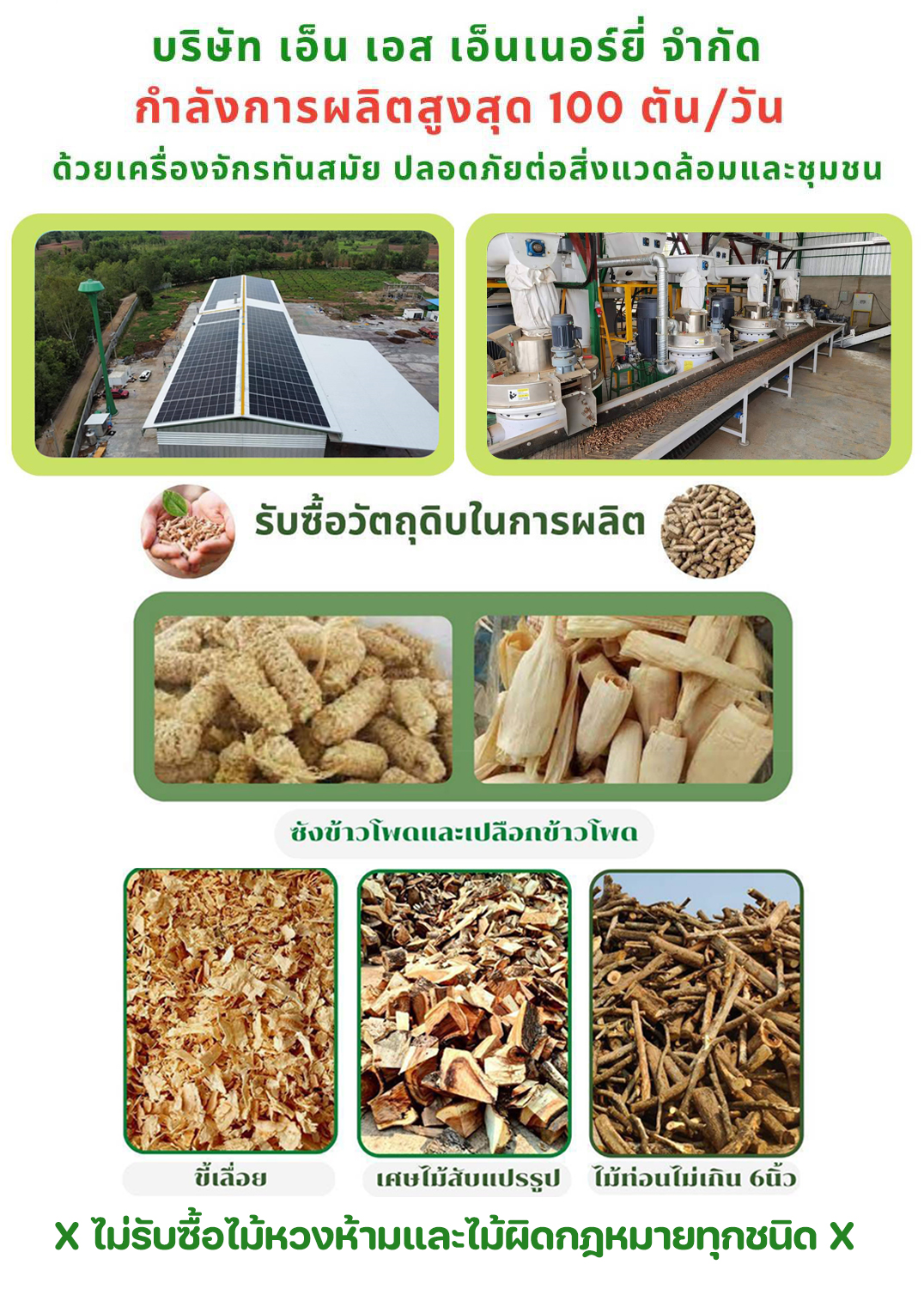 บริษัท เอ็น เอส เอ็นเนอร์ยี่ จำกัด คำนึงถึงผู้มีส่วนได้ส่วนเสีย โดยเฉพาะอย่างยิ่งคู่ค้าของเราและชุมชนรอบข้าง โดยที่เรารับซื้อไม้จำพวกไม้ฉำฉาและไม้เบญพรรณจากคู่ค้าครั่งของบริษัท นอร์ทเทอร์นสยาม ซีดแลค จำกัด และวัตถุดิบทางเกษตรกรรมจำพวกซังและเปลือกข้าวโพดจากโรงอบข้าวโพดนอร์ทเทอร์น เพื่อต่อยอดแนวคิดการรีไซเคิลวัตถุดิบแบบครบวงจร 100% เพราะเราเชื่อมั่นในการเจริญเติบโตแบบยั่งยืนและที่สำคัญยังสามารถเพิ่มรายได้ให้กับเกษตรกรในชุมชนรอบข้างของเราอีกด้วย