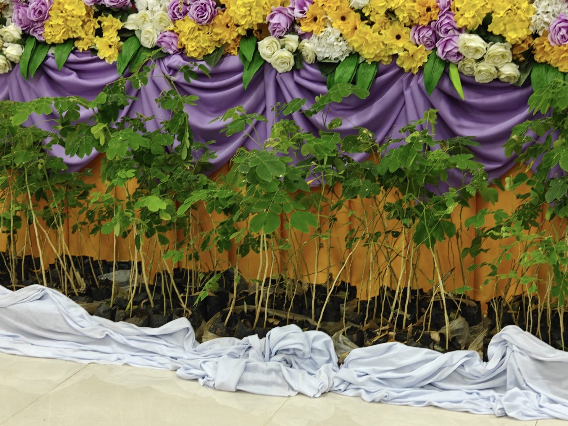 เราเตอร์ของงานคือแจกกล้าไม้จามจุรีจำนวน 3,000 ต้น ให้แก่เกษตรกรในพื้นที่เขตแม่ทะกว่า 100 แหล่งที่มาเพื่อส่งเสริมการเลี้ยงครั่งและสร้างรายได้เสริมเพื่อเพิ่มคุณค่าให้กับชุมชนชุมชนอุทยานการรักษาสิ่งแวดล้อม